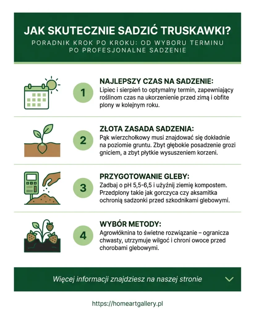 Sadzenie sadzonki truskawek najlepiej przeprowadzić latem, w lipcu i sierpniu, co umożliwia roślinom pełne ukorzenienie przed zimą i wydanie maksymalnego plonu w kolejnym roku. Wybór terminu zależy od rodzaju sadzonek (Frigo, doniczkowane, zielone) oraz oczekiwanego owocowania – wiosną minimalizujesz ryzyko mrozów, jesienią przyspieszasz zbiory. Sprawdź optymalne pory, przygotowanie gleby i odmiany poniżej.